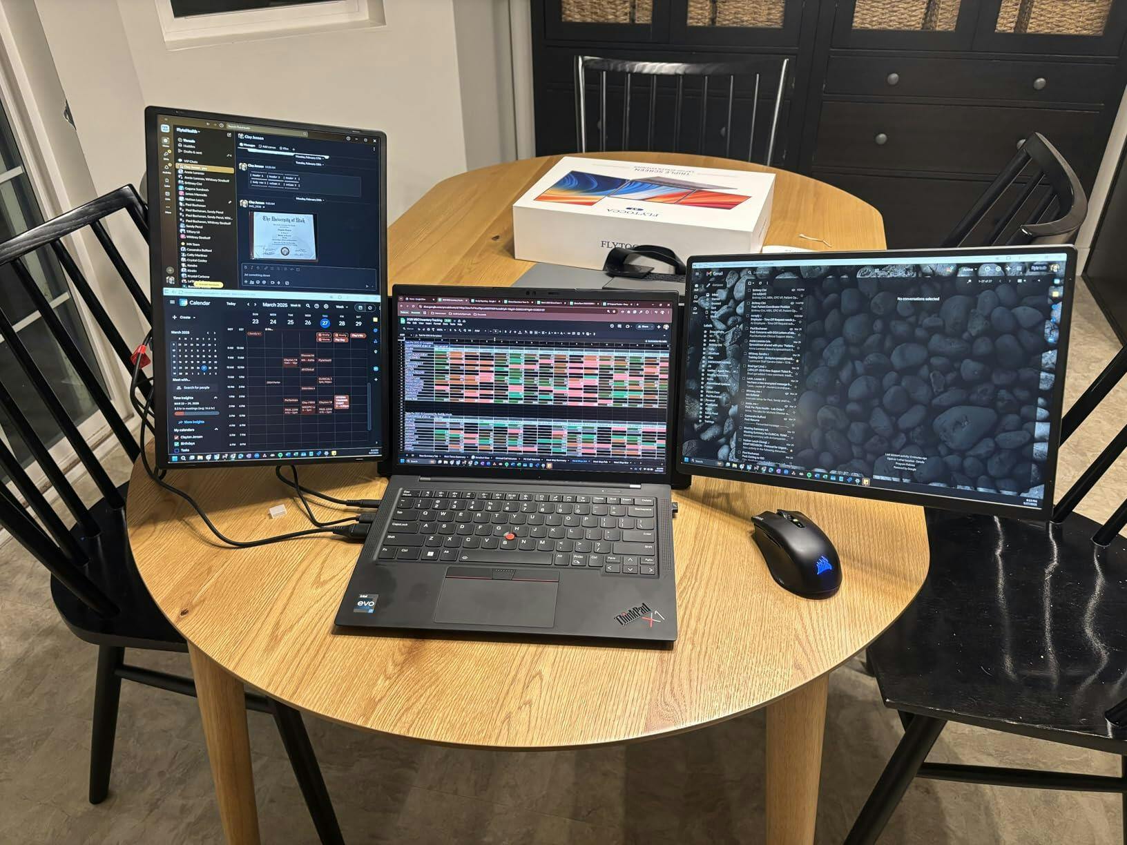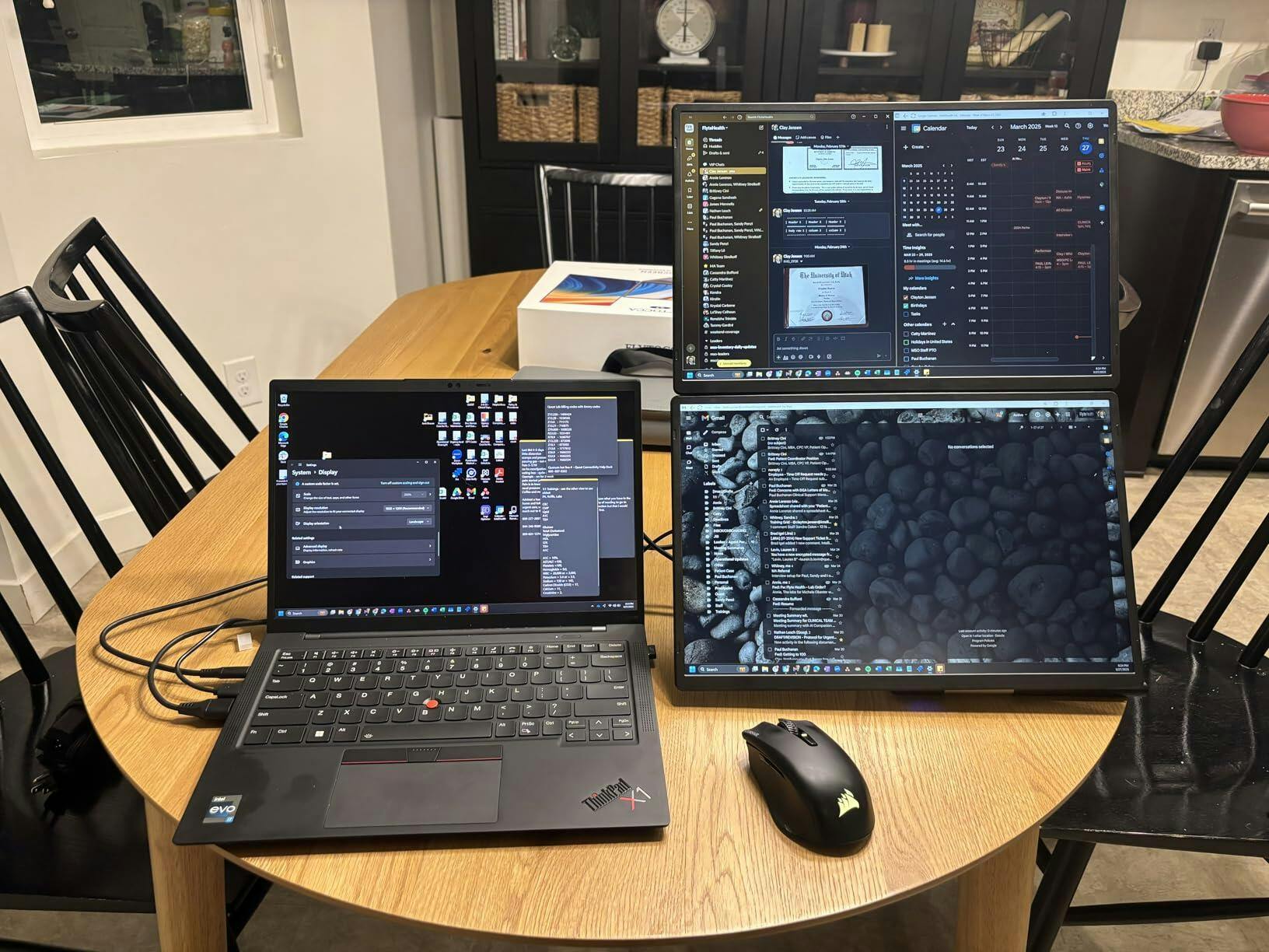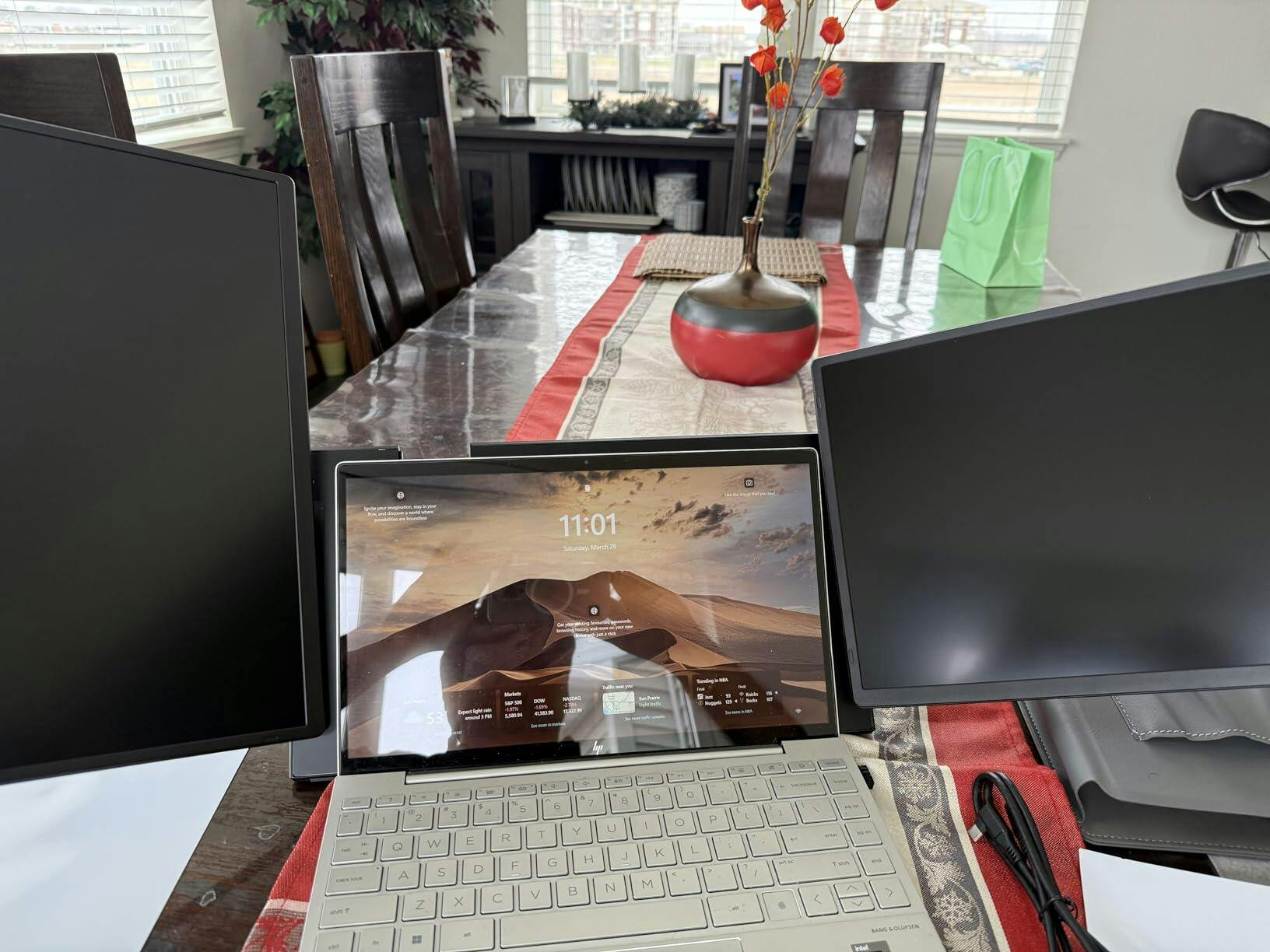 Para mi trabajo no necesito tres pantallas. Este dual de 16 pulgadas es ideal. Buena resolucion facil setup. Variic cumplio con el envio.